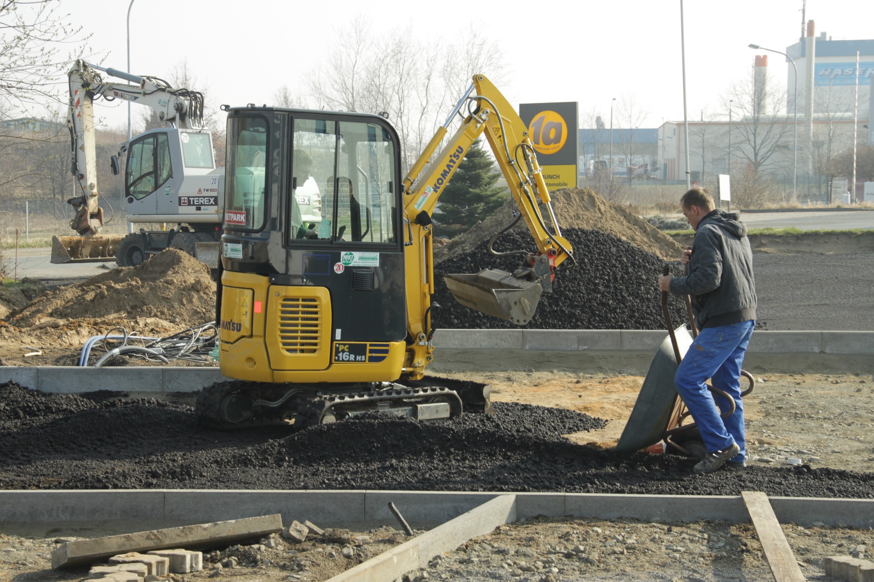 Baufortschritt 09.03.2016 - schweres Gerät auf unserer neuen Außenfläche im Einsatz